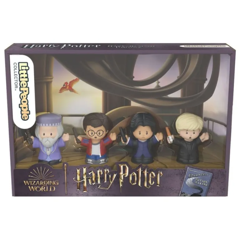 Descubre el encantador Pack de 4 Minifiguras de Harry Potter de la línea Little People Collector de Mattel, ideal para los verdaderos amantes del mundo mágico. Estas figuras de aproximadamente 7 cm capturan la esencia de personajes icónicos: Harry Potter, Draco Malfoy, Albus Dumbledore y el Profesor Severus Snape.