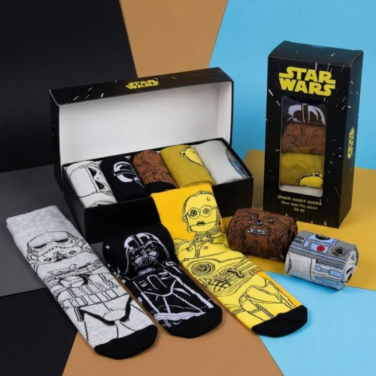 Descubre el pack de calcetines de 5 piezas de Star Wars, diseñado para los auténticos fanáticos de la galaxia muy, muy lejana. Este conjunto incluye cinco pares de calcetines, cada uno decorado con un personaje icónico de Star Wars: Stormtrooper, Darth Vader, Chewbacca, C-3PO y R2-D2. Los calcetines son multicolor, ofreciendo un toque vibrante y divertido a tu guardarropa.