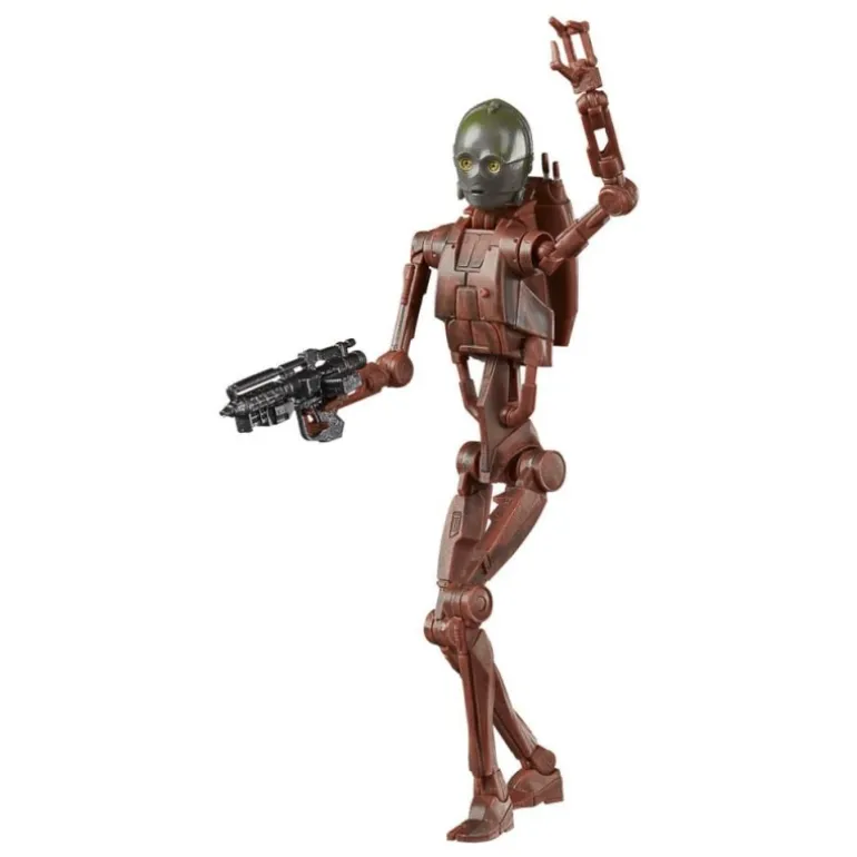 El detalle y la precisión de estas figuras son excepcionales. C-3PO viene equipado con su característico tono dorado en la cabeza, mientras que su cuerpo de droid de batalla B1 resalta en un tono cobrizo. Por otro lado, el Super Battle Droid impresiona con su acabado metálico en tonos grises, que refleja fielmente su apariencia en las películas.