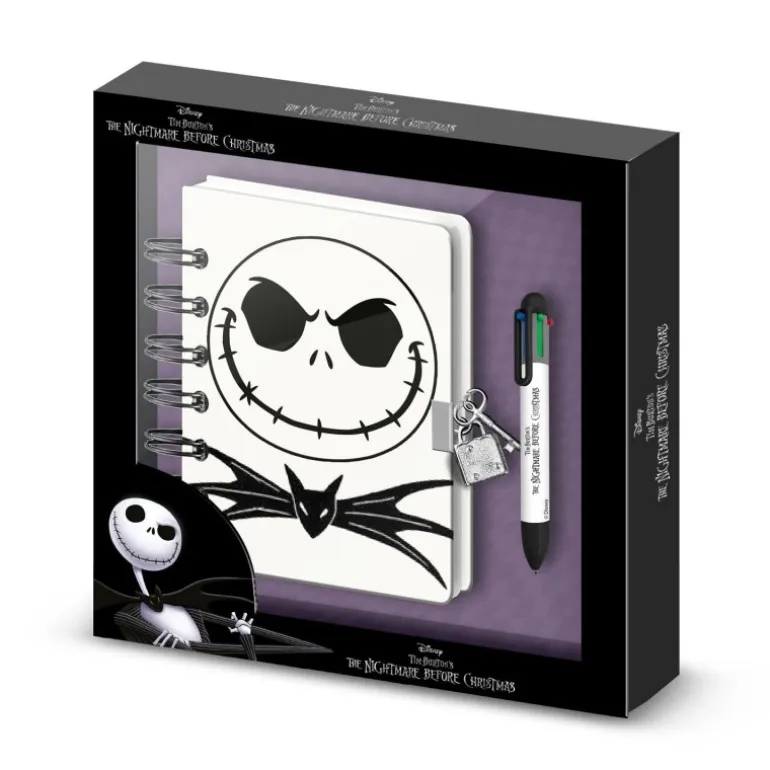Descubre el pack de diario A5 y bolígrafo de Disney Pesadilla Antes de Navidad. Este set incluye un diario con encuadernación en espiral y tapas rígidas decorativas, que además cuenta con un candado y dos llaves para mantener tus escritos seguros. Con 100 hojas blancas adornadas con un motivo del personaje, te permite capturar tus pensamientos con estilo.