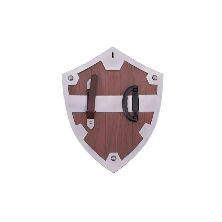 Por otro lado el escudo se trata de una réplica completamente fiel al escudo original, realizado en acero, que cuenta con unas dimensiones de 58 x 45 x 9 cm. Al ser una réplica de tamaño real es ideal para marcarte un buen cosplay de Link, porque no pesa demasiado, 3,5kg, y no se te cansará el brazo al llevarla con sus cómodos agarres que puedes ver en las fotos.