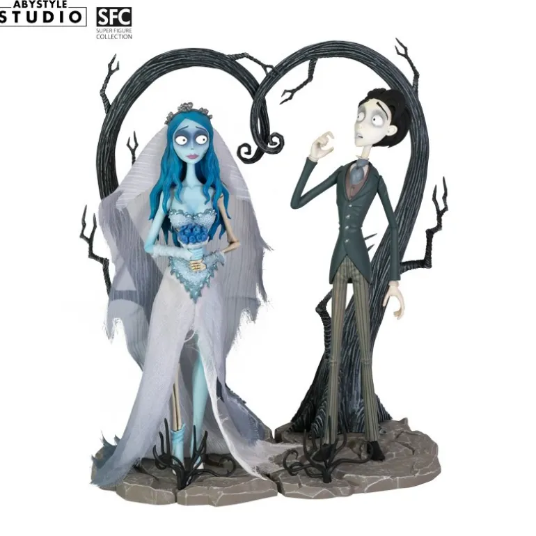 Las figuras de Emily y Victor de la serie SFC de ABYstyle Studio son una verdadera obra de arte que muestra a ambos personajes sobre una base de piedra. Se ha utilizado tela real para su velo y vestido de novia, lo que le da un acabado auténtico y de alta calidad.