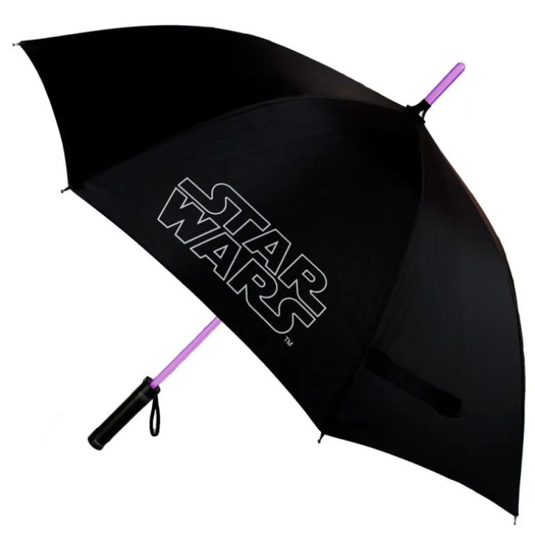 Un precioso paraguas oficial de Star Wars con licencia de Disney y unos acabados realmente sorprendentes. Con la mismísima luz que un sable láser de los utilizados por los Jedi, éste «sablaguas» te identificará por la calle a metros de distancia sin problemas