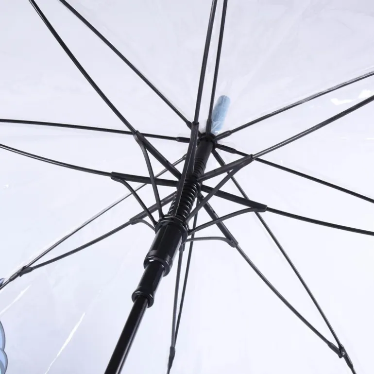 Se trata de un paraguas tan cuqui como práctico. Cuando lo abras tendrás un paraguas de unos de 90 a 100 cm, que te tapará perfectamente para que no te caiga ni una gota. Además el diseño es absolutamente fantástico, es transparente para que veas las gotas caer y dibujos de Stitch por todo el paraguas.