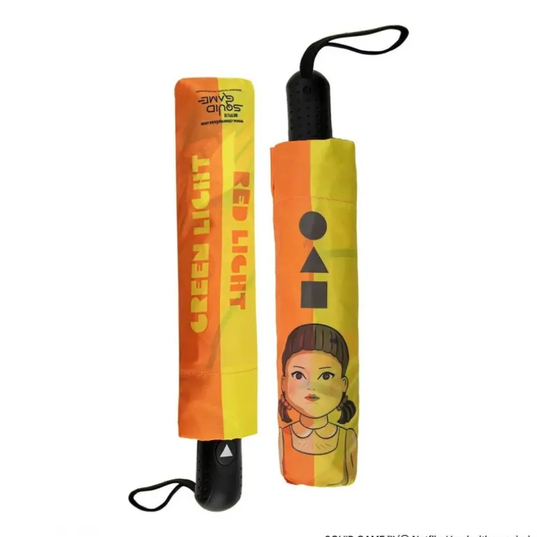 Descubre el espectacular Paraguas Young-Hee inspirado en la icónica serie Squid Game. Este paraguas, con medidas compactas de 32cm x 5,8cm x 5,8cm, es perfecto para llevar contigo a todas partes. Presenta un diseño vibrante en tonos amarillos y naranjas, destacando la figura de Young-Hee, el inquietante muñeco que seguro reconocerás. Además, las frases «Red Light, Green Light» añaden un toque auténtico al conjunto. Fabricado con materiales de alta calidad, ofrece durabilidad y protección en los días lluviosos. Disfruta de un artículo de colección único que no solo es funcional, sino que también es un verdadero homenaje a la serie que ha capturado la imaginación de millones. Ideal para apasionados de El Juego del Calamar que buscan algo más que un simple paraguas.
