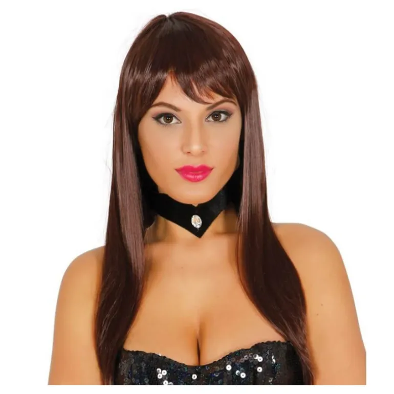 Peluca lisa castaña