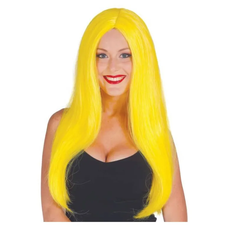 Peluca Melena Larga Amarilla Lisa. Perfecta para disfraces como el de Jamelga Anderson o Pitufina.