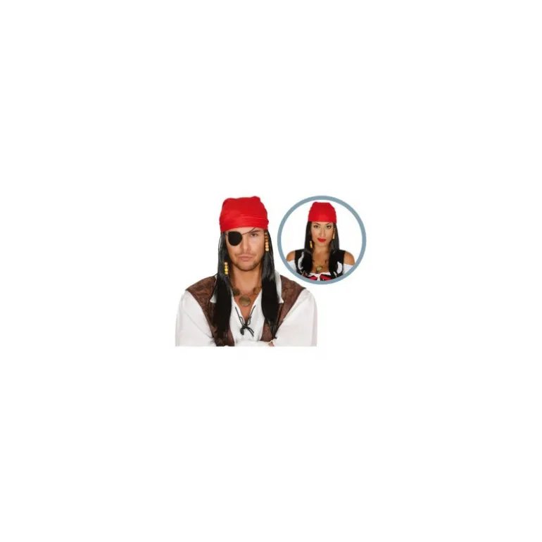 Peluca negra larga y pañuelo Pirata. Complemento ideal para nuestros disfraces de bucanero, pirata o corsario.