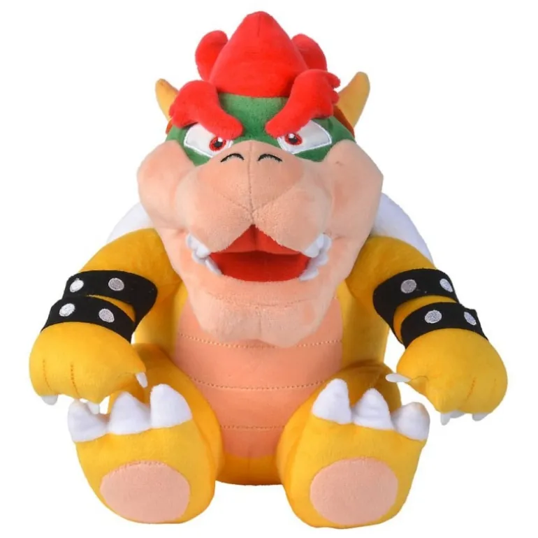 Descubre el peluche de Bowser, una fiel representación del icónico personaje de Super Mario. Con su corpulencia distintiva, este peluche de 27 cm está diseñado con colores vibrantes y detalles auténticos que capturan a la perfección su feroz apariencia. Bowser luce su característica melena roja y su caparazón verde con picos naranjas. Sus grandes brazos amarillos están decorados con brazaletes negros, dándole un aspecto imponente pero suave al tacto.
