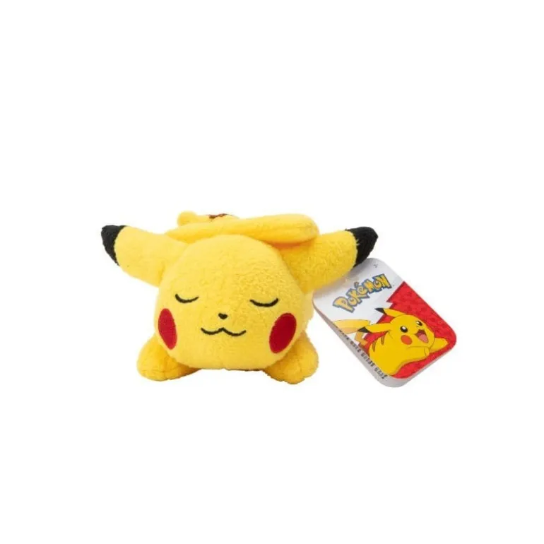 Descubre la ternura del peluche de Pikachu para dormir, un artículo oficial de Pokémon fabricado por Jazwares. Este encantador peluche mide aproximadamente 12 cm, perfecto para acompañar las siestas de los más pequeños o para agregar a tu colección de Pokémon.