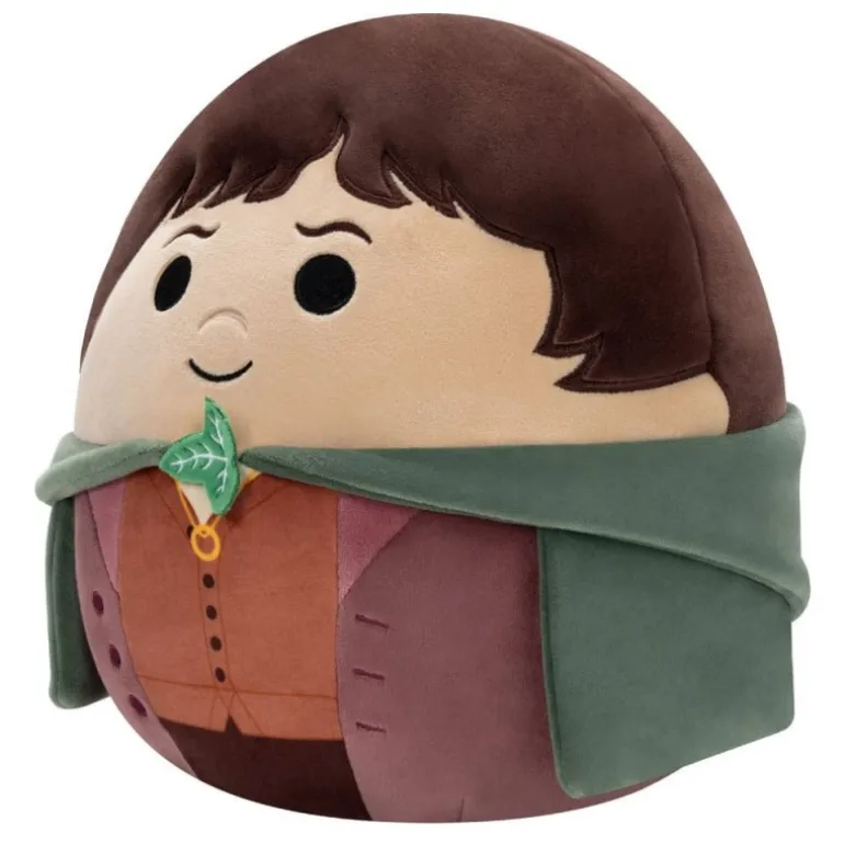 Descubre el adorable peluche Frodo Squishmallows de 25 cm, inspirado en la icónica saga El Señor de los Anillos. Este tierno peluche cuenta con un diseño encantador, presentando a Frodo con su característico cabello marrón y una cálida capa verde, cuidadosamente detallada con un broche en forma de hoja. Fabricado por Jazwares, este producto con licencia oficial es perfecto para fanáticos de todas las edades.