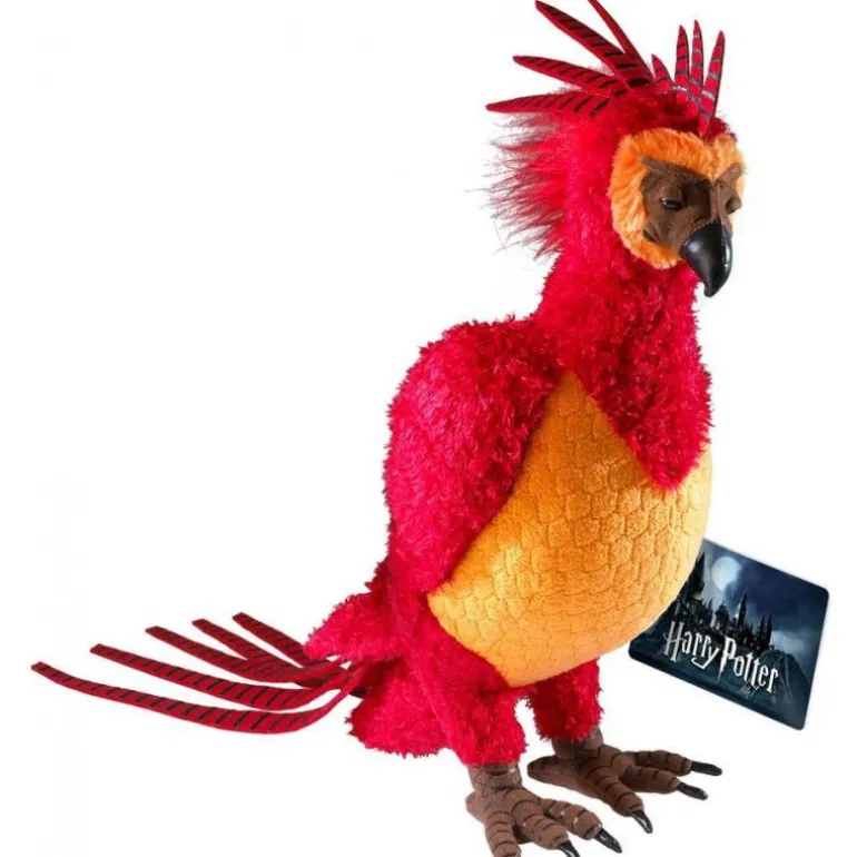 Un fantástico peluche oficial de Harry Potter de en torno a unos 30 cm, que es en realidad una fiel réplica de Fawkes, el ave Fénix que Dumbledore tiene en su despacho y que ha sido diseñada y fabricada por la prestigiosa firma de réplicas de cine The Noble Collection. Es un peluche con gran calidad tanto en materiales como en acabados.
