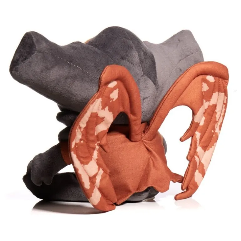 Su diseño detallado representa fielmente al personaje, destacando sus ojos brillantes y su imponente figura en tonos marrón y gris oscuro. Las alas detalladas añaden un toque especial a su encantador diseño.