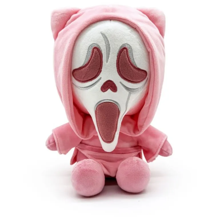 El peluche presenta al icónico Ghost Face con un toque adorable, vistiendo un conjunto color rosa pastel que incluye una capucha y orejitas que aportan un toque de ternura irresistible. Sus dimensiones son de 17,1 x 28,2 x 16 cm y tiene un peso ligero de 191 gramos, lo que lo hace ideal para decorar cualquier espacio o para llevarlo contigo a todas partes.