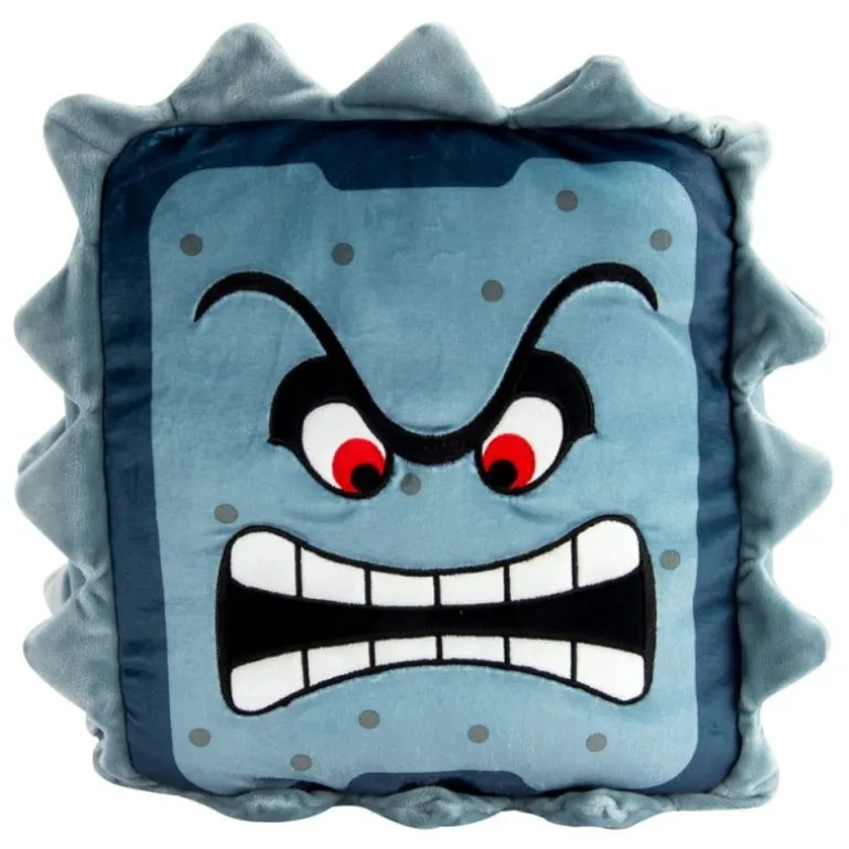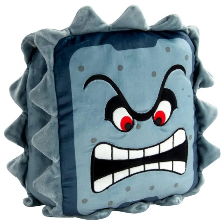 Con un diseño único y detallado, este peluche es de un color azul suave con un rostro expresivo y características acentuadas por detalles en rojo y negro. La textura es mullida y los bordes imitan las espinas clásicas de esta icónica roca del videojuego.