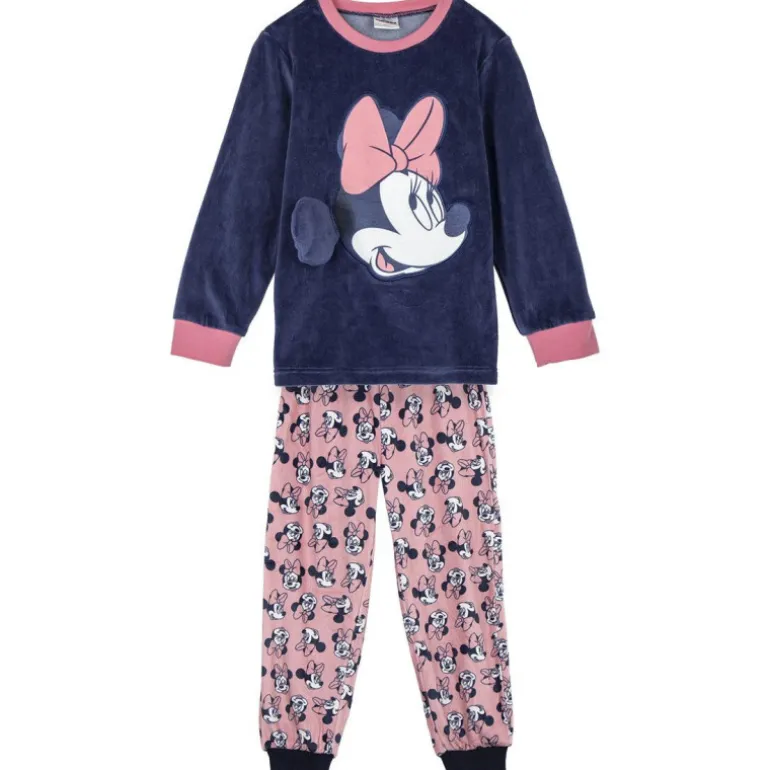 Descubre el encantador pijama largo coral fleece con aplicaciones de Minnie, ideal para mantener a tus pequeños cómodos y abrigados durante las noches frías. Este conjunto consta de una camiseta de manga larga en color azul marino con la adorable imagen de Minnie Mouse en el centro, resaltada por un lazo rosado que añade un toque de ternura. El cuello y los puños también presentan detalles en rosa claro, creando un contraste elegante y atractivo.