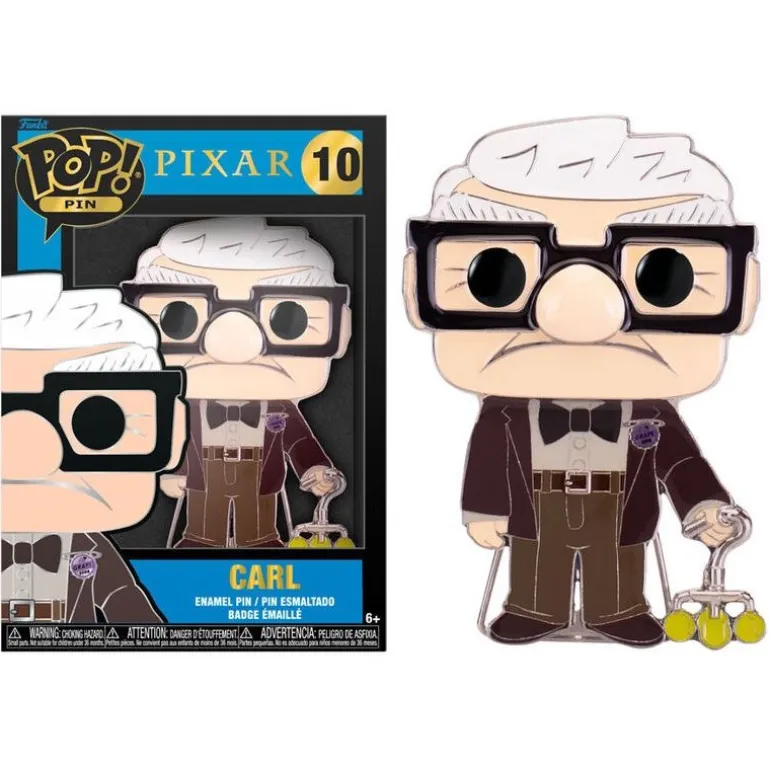Se trata de un pin de metal con un diseño genial y unos acabados estupendos, con la forma y el tamaño de un Funko Pop! En este caso, Funko, nos trae a uno de los personajes más entrañables de Disney-Pixar, nada menos que Carl, el señor que coprotagoniza la mítica peli Up. Tiene todos los detalles típicos de Carl, tanto en el traje como en el rostro o en su típico bastón. Y además, fíjate porque viene en una cajita que es como la de las figuras Funko Pop! Una genialidad.