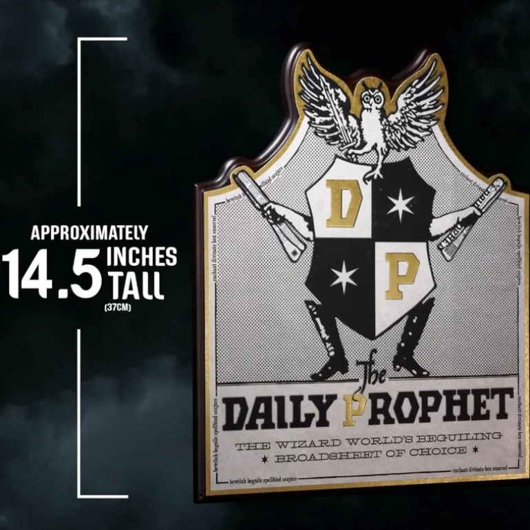 Esta excepcional placa del Periódico El Profeta es un artículo imprescindible para los coleccionistas de Harry Potter. Con unas dimensiones de 43cm x 35cm x 7cm, es el complemento perfecto para cualquier espacio dedicado al mundo mágico. La placa presenta el icónico diseño del Daily Prophet con detalles en blanco y negro, resaltados por toques dorados que le confieren un aspecto elegante y auténtico. Fabricada con materiales de alta calidad, garantiza durabilidad y un acabado impecable. Ideal para fans que desean añadir un toque auténtico a su colección. Este producto no solo es decorativo, sino que también es un excelente regalo para cualquier amante de las aventuras de Harry Potter, permitiendo revivir la magia a través de uno de sus símbolos más emblemáticos.