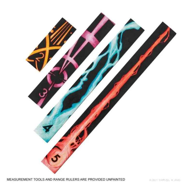 Eleva tus partidas de Marvel: Crisis Protocol con este exclusivo set de herramientas de medición. Incluye tres plantillas de movimiento articuladas en color negro y azul con detalles naranjas, y cuatro plantillas de alcance decoradas con diseños vibrantes, perfectas para aportar precisión y estilo a tus juegos. Fabricadas por Atomic Mass Games, estas plantillas son un complemento ideal para jugadores a partir de 14 años. Producto con licencia oficial, perfecto como regalo para los aficionados a los juegos de miniaturas.