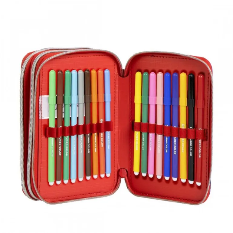 Este plumier temático de Spiderman es el complemento ideal para los más pequeños de la casa. Fabricado al 100% en poliéster, garantiza durabilidad y resistencia. Su diseño en vibrante color azul con detalles rojos presenta una imagen dinámica del icónico superhéroe. El plumier se abre mediante cremalleras y revela un interior cuidadosamente organizado. Incluye una variedad de accesorios escolares como lápices de colores, rotuladores, regla y goma de borrar, todo decorado con motivos de Spiderman. Perfecto para incentivar la creatividad y el orden en la escuela.