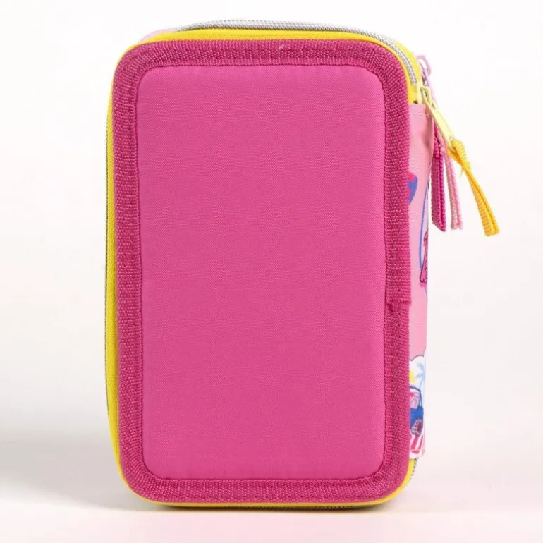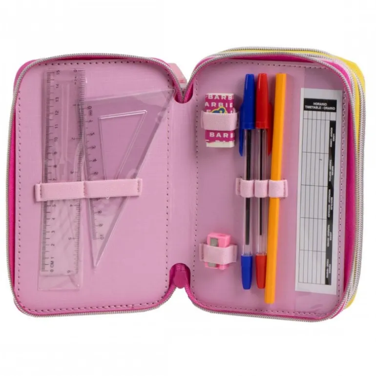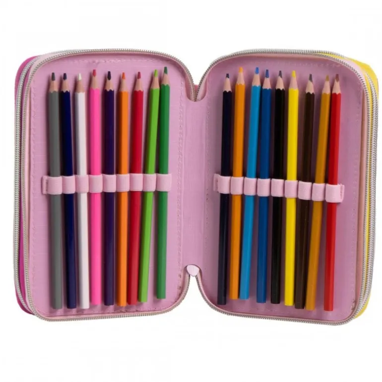 El interior está magníficamente organizado con todo lo necesario para la escuela: colores, bolígrafos, reglas, gomas de borrar y más. Sus compartimentos están diseñados para mantener el orden y facilitar el acceso a cada accesorio. Perfecto para inspirar la creatividad y el aprendizaje de las más pequeñas. Un regalo práctico, lleno de estilo y esencial para el día a día escolar.