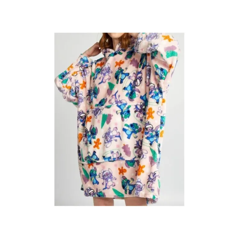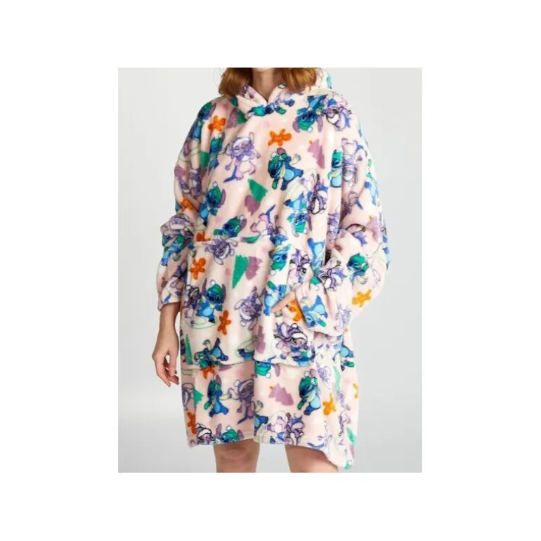 Y es que este poncho de franela tiene un estampado con con varios personajes de la película Lilo y Stitch como el propio Stitch o Angel. Está fabricado en 100% poliester de alta calidad (tejido polar), con bien de borreguito por dentro para que parezca que sigues en la cama.