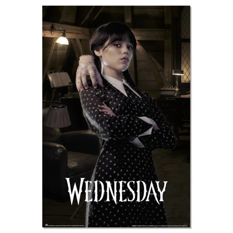 Se trata de un póster realmente precioso con una imagen espectacular de Jenna Ortega encarnando a Miércoles Addams (Wednesday Addams) en la existosa serie que Netflix ha lanzado como spin off de la clásica La Familia Addams . Es uno de esos diseños que impactan nada más los ves, ya que aparece con Cosa, y con el que dejarás boquiabierto a cualquier seguidor de la serie y hasta a quien no lo sea.