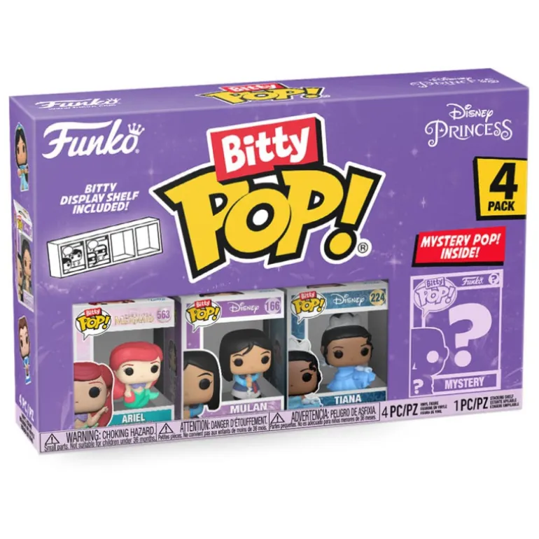 El pack de 4 figuras Bitty POP! 2 de Princesas Disney es el complemento perfecto para cualquier colección de fanáticos de las princesas. Fabricado por Funko, este pack incluye las adorables figuras de vinilo de Mulán, Ariel y Tiana, con la adición de una figura Mystery Rare o una Hyper Rare que hará que tu colección sea única.