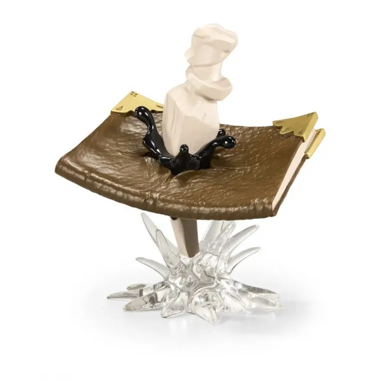 Descubre un artículo de colección único que captura una de las escenas más icónicas de la saga Harry Potter. Este conjunto incluye una réplica detallada del diario de Tom Riddle atravesado por un colmillo de basilisco. El diario, de color marrón, parece auténtico gracias a su textura y detalles dorados en las esquinas. El colmillo, de un tono marfil, se alza imponente sobre una base transparente que simula el impacto del ataque. Con unas medidas de 20,2cm X 15,2cm X 12,2cm, es una pieza perfecta para destacar en cualquier colección. Fabricado por The Noble Collection, con licencia oficial.