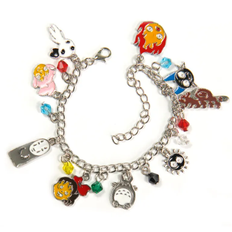 Una original pulsera llena de abalorios de las obras de Hayao Miyazaki más queridas: Mi vecino Totoro, Nicky la aprendiz de bruja, el Castillo ambulante, La princesa Mononoke… Los abalorios están fabricados en aleación metálica ligera, lo que le confiere un tacto realmente agradable además de que se consigue un tamaño razonable y cómoda de llevar puesta por que no pesa nada.
