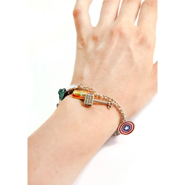 Una original pulsera llena de abalorios de diversas temáticas de Marvel y fabricada con una excelente calidad tanto de acabados como de material y diseño gráfico. Los abalorios están fabricados en aleación metálica ligera, lo que le confiere un tacto realmente agradable además de que se consigue un tamaño razonable y cómoda de llevar puesta por que tiene un trocito de cadena para que la puedas ajustar a tu muñeca.