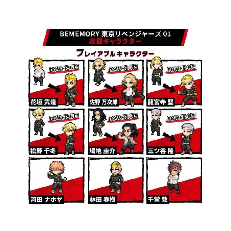 Incluye una tarjeta de memoria BE exclusiva de Tokyo Revengers, permitiendo a los usuarios entrenar y evolucionar personajes del famoso manga y anime. Con 27 formas para descubrir, los niños pueden mejorar sus estadísticas de ataque y defensa a través de ejercicios físicos como golpes, sentadillas y más.