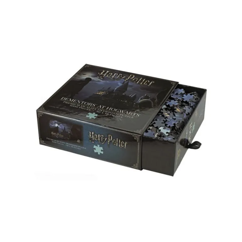 Extraordinario Puzzle de 1000 piezas con una imagen realmente chula, pero a la vez muy muy difícil para completar: nada menos que una tenebrosa imagen nocturna con unos temibles Dementores rodeando Hogwarts. ¿Te atreves a intentarlo?