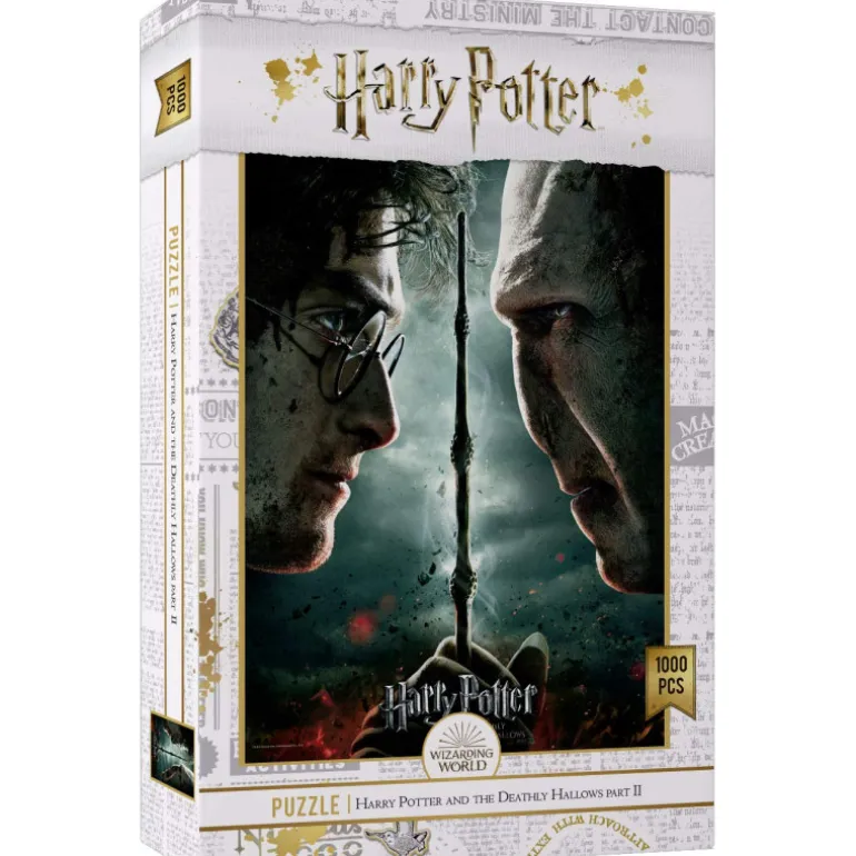 Se trata de un puzzle con la impresionante imagen uno frente al otro de Harry Potter y Voldemort, tal y como los vimos en Las Reliquias de la Muerte Parte 2. Uno de esos puzzles que querrás hacer cuanto antes, porque lo podrás exponer en tu habitación para que no quepa duda de que ahí vive un auténtico fan de Harry Potter, ya que tendrás un cuadro de unas medidas de 70 x 50 cm.