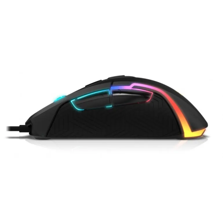 Este ratón cuenta con 7 botones programables y una impresionante iluminación LED RGB dinámica que se puede personalizar a través de su software especializado. Ofrece 6 niveles de DPI ajustables, perfectos para juegos tipo shooter donde la precisión es clave. Gracias a su cable mallado de 1,5 metros, proporciona una gran libertad de movimiento.