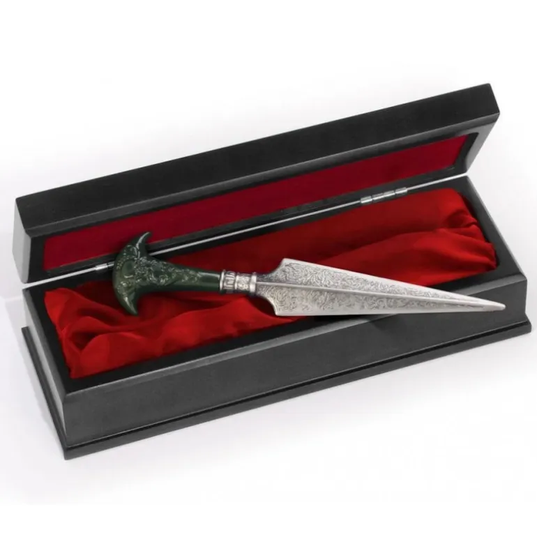 Un producto realmente de culto para aficionados de verdad al universo Harry Potter y su lado más tenebroso. Se trata de una espectacular réplica de tamaño real de la daga de Bellatrix Lestrange, la maga más despiadada y servidora fiel del Señor Tenebroso.