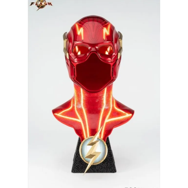 Descubre la réplica a escala 1:1 del casco de The Flash, una pieza exclusiva para verdaderos coleccionistas de DC Comics. Este artículo de colección, fabricado por Pure Arts, destaca por su impresionante diseño que captura fielmente cada detalle del icónico casco del velocista. Con un acabado en poliresina de gran calidad, su vibrante color rojo se complementa con finos detalles dorados que simulan el relámpago característico del personaje.