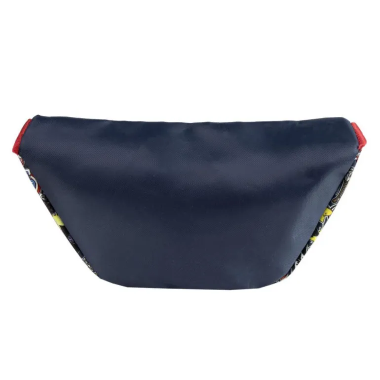 Descubre la riñonera Avengers, un complemento imprescindible para los seguidores del universo Marvel. Confeccionada en 100% poliéster, esta riñonera destaca por su durabilidad y resistencia. Su color azul oscuro se complementa perfectamente con un llamativo estampado de iconos y personajes de Marvel, incluyendo al icónico logotipo en el bolsillo frontal.