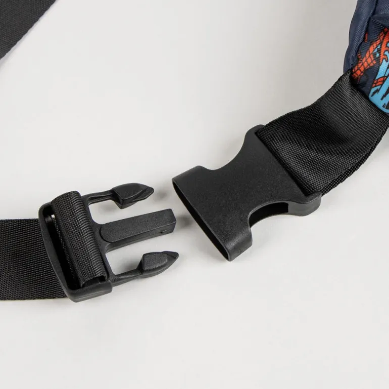 Descubre la riñonera Spiderman, un complemento imprescindible para los amantes del universo Marvel. Fabricada en un elegante color azul oscuro, esta riñonera está adornada con un atractivo estampado del icónico superhéroe Spiderman, destacando su estilo dinámico y audaz.
