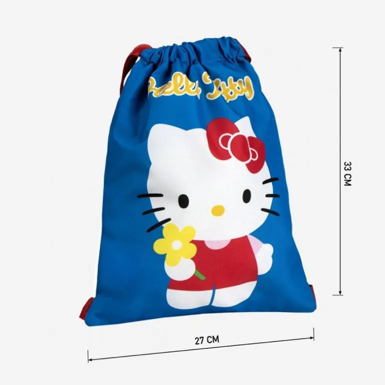 Este saquito escolar Hello Kitty es ideal para los pequeños fans de este icónico personaje. Confeccionado en 100% poliéster de alta calidad, presenta un vibrante color azul que destaca el adorable diseño de Hello Kitty en su parte frontal. La bolsa mide 33 cm de alto y 27 cm de ancho, ofreciendo un espacio amplio para libros o material escolar. Sus asas rojas con sistema de seguridad de velcro aseguran que los más pequeños puedan llevarlo cómodamente y sin preocupaciones. Incluye una etiqueta para el nombre, perfecta para personalizar. Este complemento es perfecto para el uso diario en la escuela, combinando funcionalidad y un diseño encantador que hará sonreír a cualquiera.