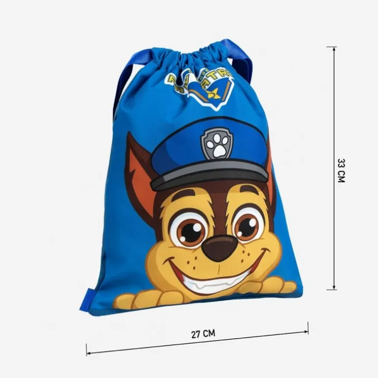 Descubre el saquito escolar perfecto para los más pequeños amantes de Paw Patrol. Este saco, fabricado en 100% poliéster, presenta un vibrante color azul que capta la atención al instante. La parte frontal muestra una imagen del simpático personaje, con su icónico sombrero azul y emblema de huella.