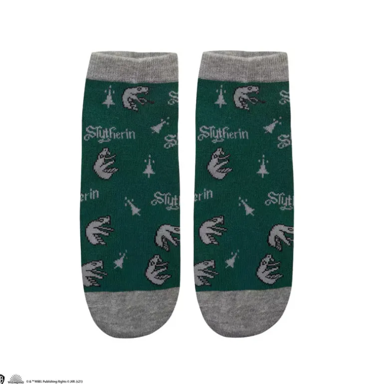 El set de 3 pares de calcetines bajos Slytherin Harry Potter es el complemento ideal para cualquier seguidor de la saga. Con un diseño inspirado en la mítica casa de Slytherin, estos calcetines son perfectos para lucir el orgullo de pertenecer a esta casa emblemática del mundo mágico.