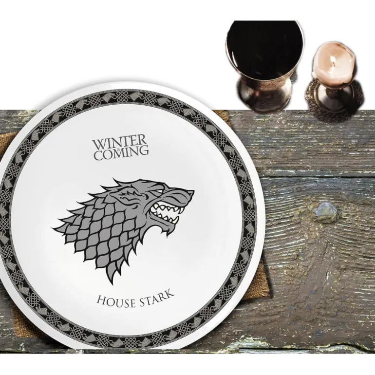 Fabricados en porcelana resistente y de alta calidad, estos platos no solo son decorativos sino también perfectos para el uso diario o para eventos especiales. Presentados en un pack elegante, son el regalo ideal para coleccionistas y amantes del universo de Westeros.