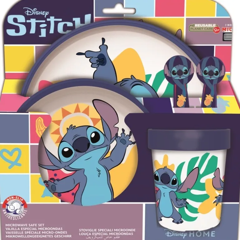 Descubre este Set de 5 piezas antideslizante de Stitch, un producto con licencia oficial que combina diseño y funcionalidad. Este set incluye platos, tazas y cubiertos, todos decorados con el icónico personaje Stitch, y es perfecto para los fans de Disney. Su acabado bicolor le da un toque moderno y atractivo, mientras que el material antideslizante garantiza seguridad al usarlos. Presentado en una caja elegante, este set es ideal como regalo.