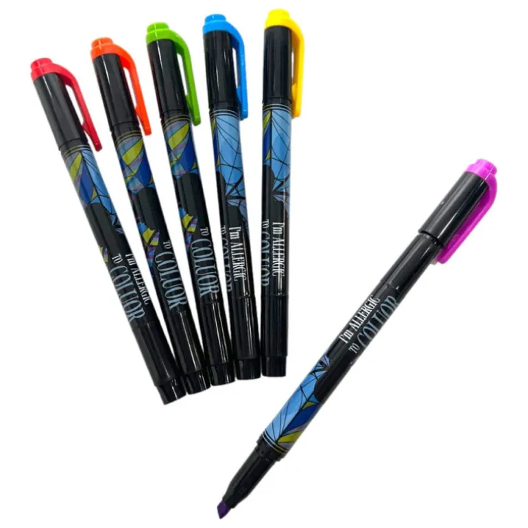 Descubre el oficial Set de 5 Subrayadores Wednesday, perfecto para los amantes de Miércoles Addams. Este conjunto incluye cinco rotuladores de vibrantes colores: rojo, naranja, amarillo, verde y morado. Cada subrayador está diseñado con un elegante cuerpo negro decorado con detalles en azul y un diseño inspirado en la estética única de Wednesday. Los tapones a juego refuerzan el color de cada rotulador, asegurando que encuentres el tono perfecto para cada nota.