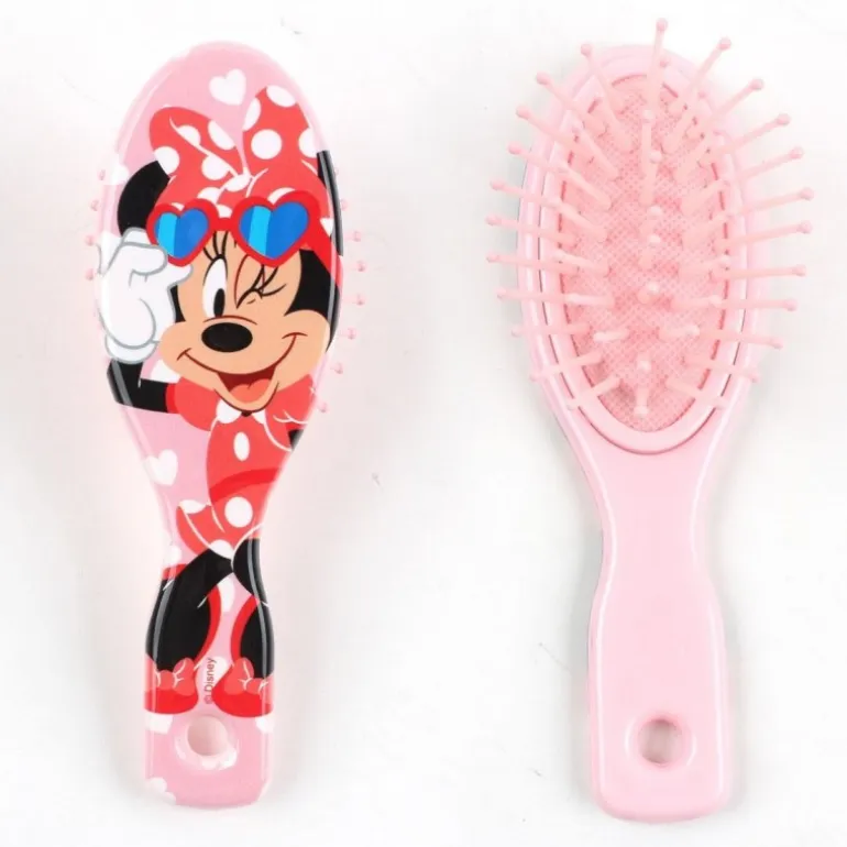 Descubre el encantador Set de Belleza Bolsito Minnie, un accesorio imprescindible para los pequeños fans de Minnie Mouse. Este set, presentado en un práctico y colorido bolsito de fondo rojo con detalles en rosa, es perfecto para llevar a todas partes. Incluye una variedad de accesorios: una encantadora cepillo de pelo con la imagen de Minnie, horquillas con lazos de tul en tonos pastel y brillantes, y coleteros adornados con la icónica figura de Minnie Mouse.