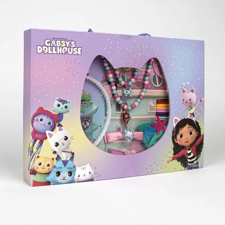 La caja de presentación es de un hermoso diseño con ilustraciones de los personajes de Gabby’s Dollhouse, haciendo de este set el regalo perfecto para niñas que aman explorar la belleza y el estilo con un toque de imaginación.