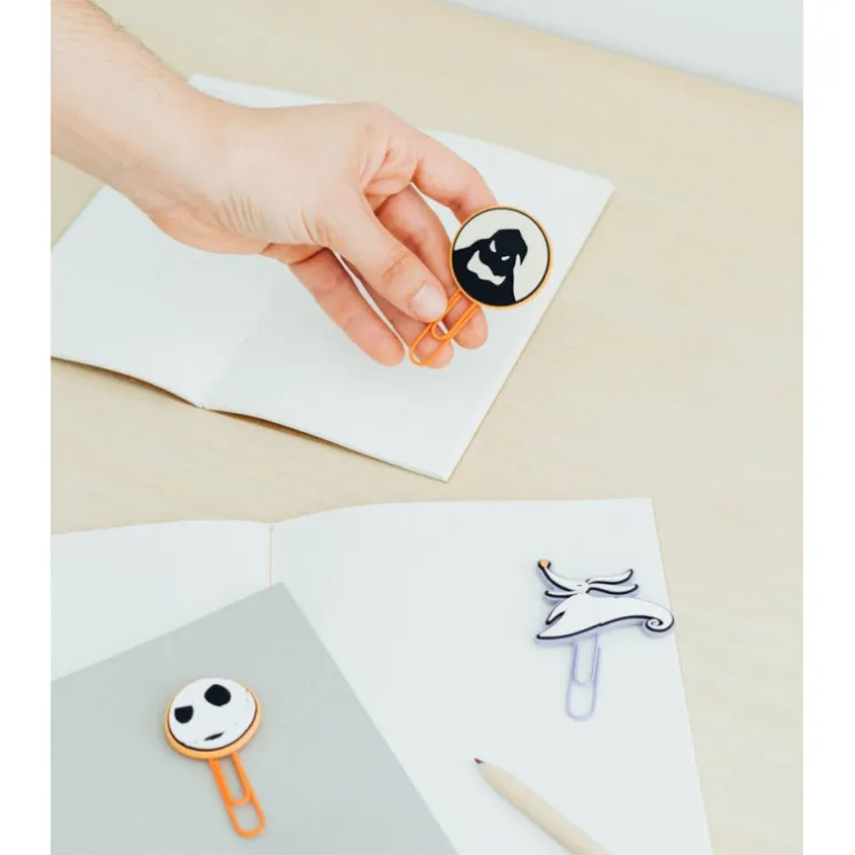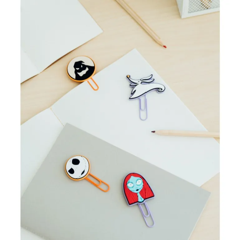 Cada uno de los clips está decorado con motivos de la icónica película, Pesadilla antes de Navidad, lo que los convierte en un regalo original y exclusivo para los amantes de esta obra maestra cinematográfica. Estos clips no solo cumplen con su función práctica de sujetar papeles y documentos, sino que también añaden un toque de estilo y personalidad a cualquier escritorio o espacio de trabajo.