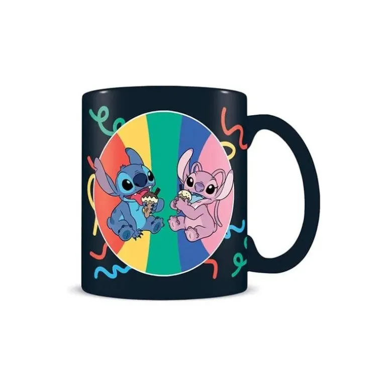 Se trata de un set que incluye una taza muy chula de Stitch y Ángel, para tomarte lo que quieras mientras disfrutas de sus pelis, y también un posavasos y llavero con Stitch como protagonista.