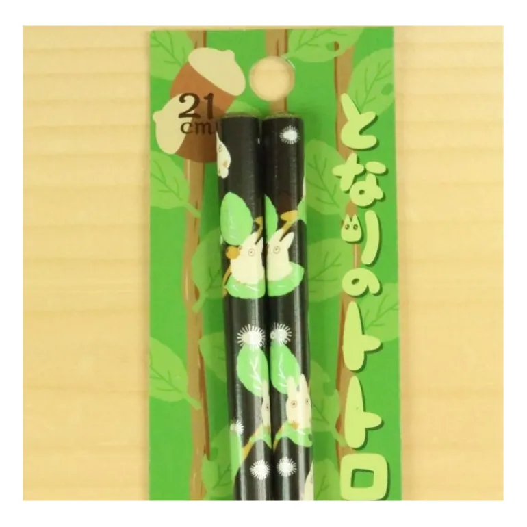 Un set de palillos de bambú para comer de 21 cm y con un diseño que homenajea a una de las más icónicas películas de Hayao Miyazaki, Mi Vecino Totoro.